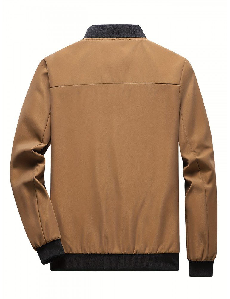 Men's Multi Pocket Cargo Jacket, Casual Stand Collar Windbreaker Jacket Tactical Jacket For Outdoor Activities