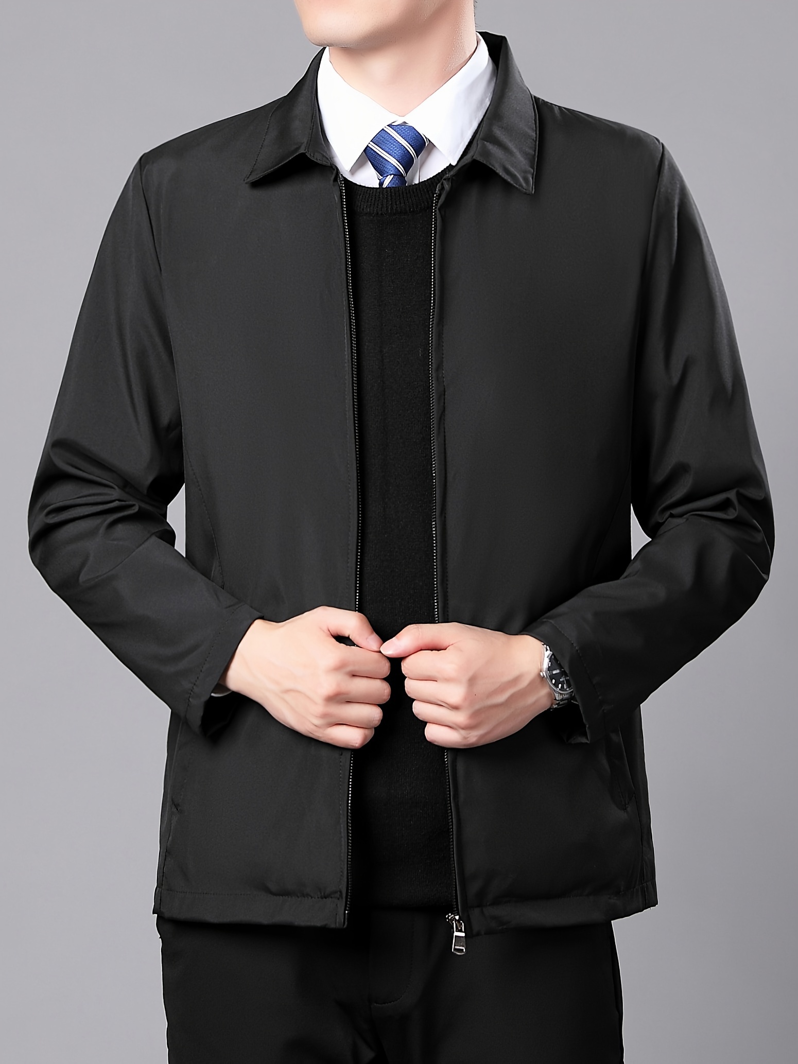 Mens Classic Stylish Zip Up Jacket - Versatile Long Sleeve with Durable Zipper - Perfect Casual Wear for Everyday Fashion - Mens Clothing