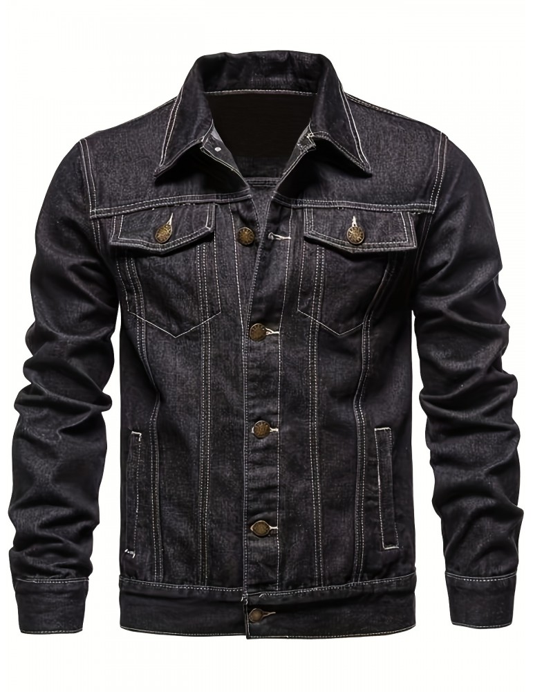 • Stylish Men's Denim Jacket - Button Up Streetwear for Casual Comfort