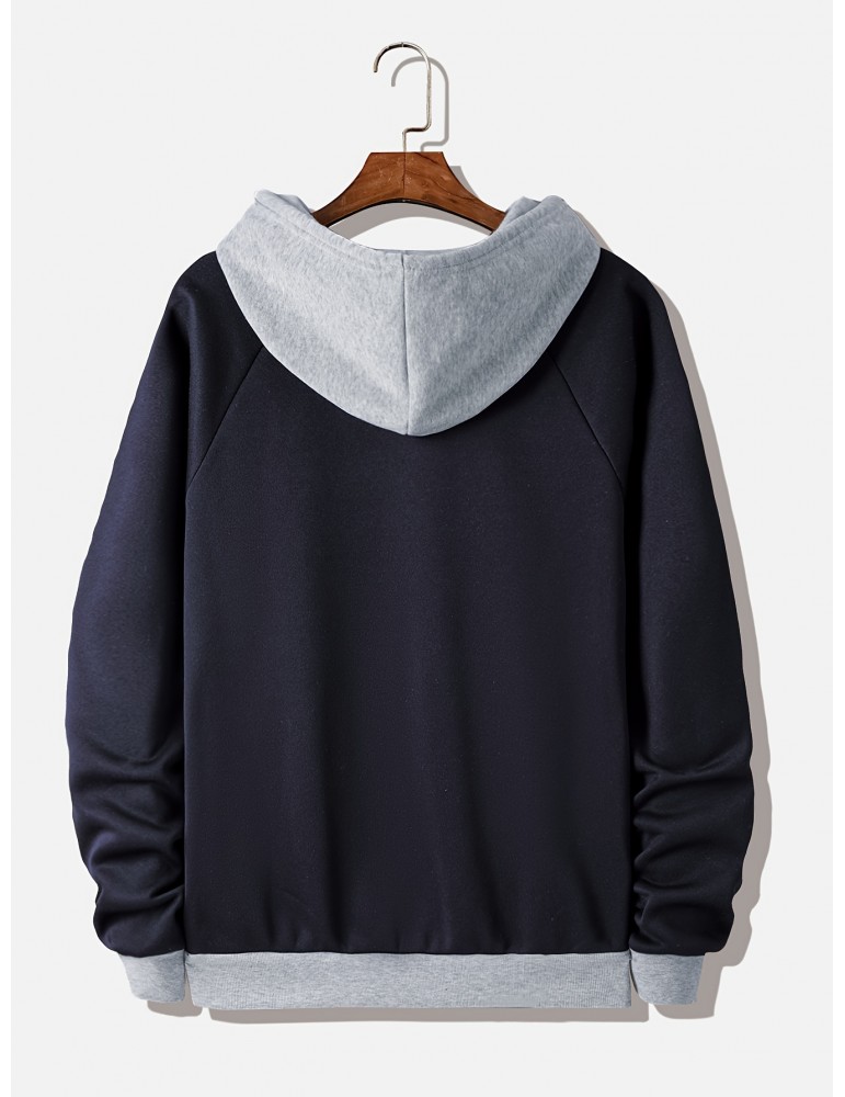 Men's Plus Size Color Block Hoodie: Comfy Long Sleeve Sweatshirt With HUMBLE Print & Pocket