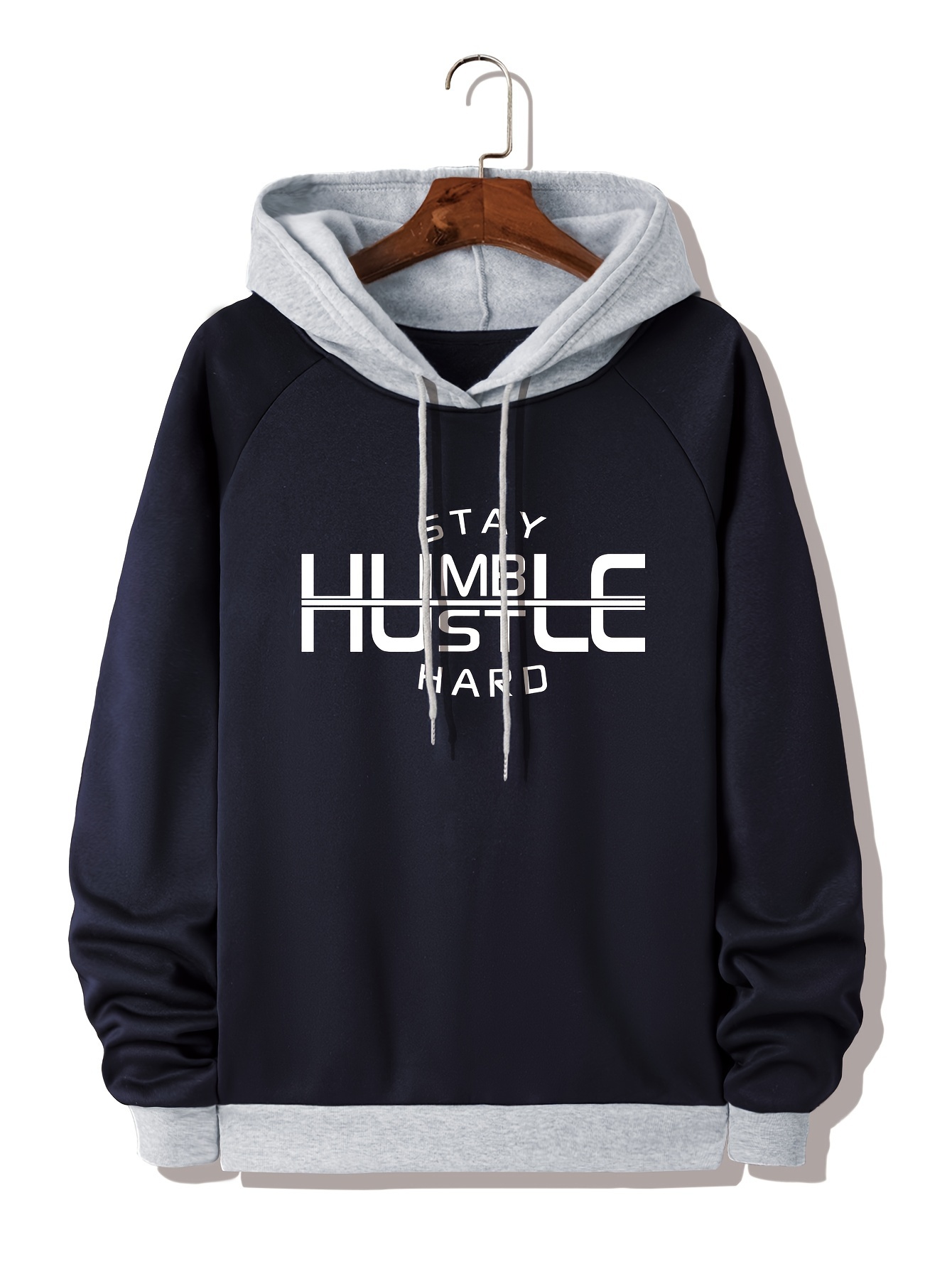 • Men's Plus Size Color Block Hoodie: Comfy Long Sleeve Sweatshirt With HUMBLE Print & Pocket